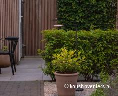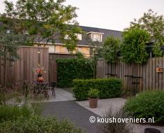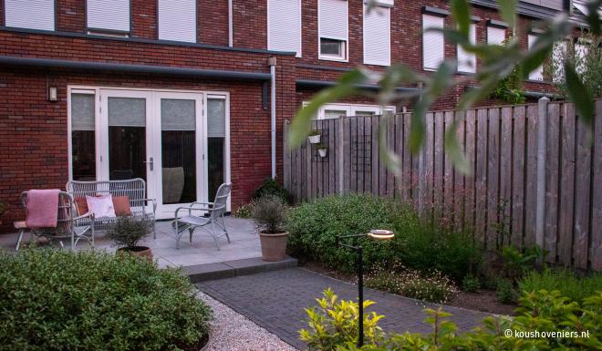 In deze sfeervolle achtertuin in Ede hebben we een rustgevende buitenruimte gecreëerd waar genieten centraal staat. Een ruim terras vormt het hart van de tuin, perfect voor lange zomeravonden en gezellige momenten met vrienden of familie. De beplanting is met zorg samengesteld: kleurrijke bloemen zorgen voor een levendig beeld in elk seizoen, terwijl groenblijvende accenten structuur en diepte geven.