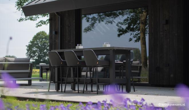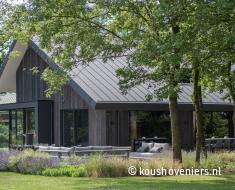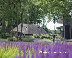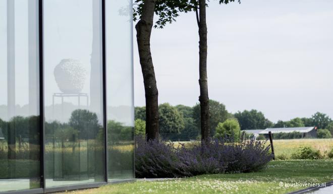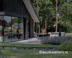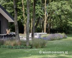 Deze tuin is volledig in harmonie met het huis. Een natuurlijke tuin met design waar je de vogels hoort fluiten en lange zomeravonden door kunt brengen. Deze tuin straalt rust en ruimte uit. Een unieke woonplek, met uitzicht over de weilanden.