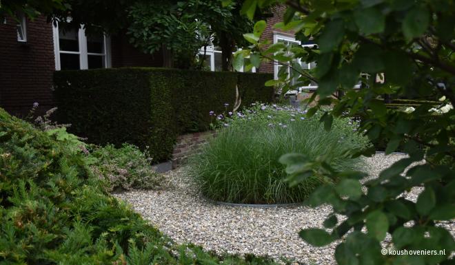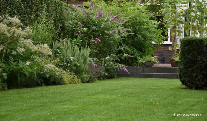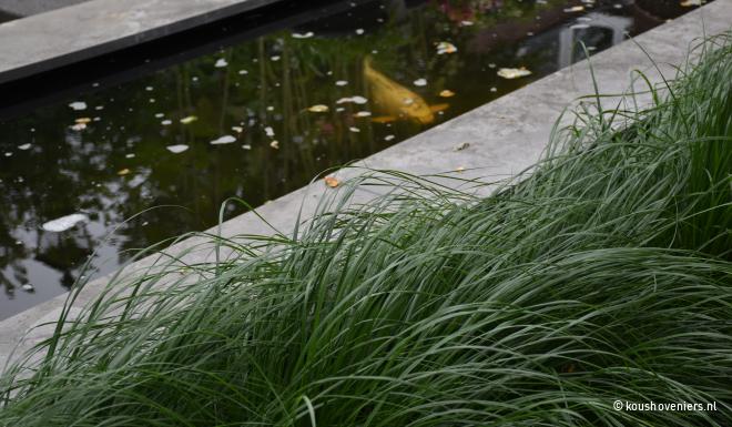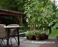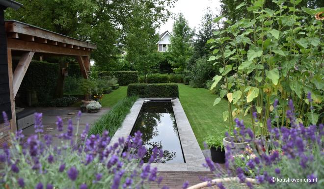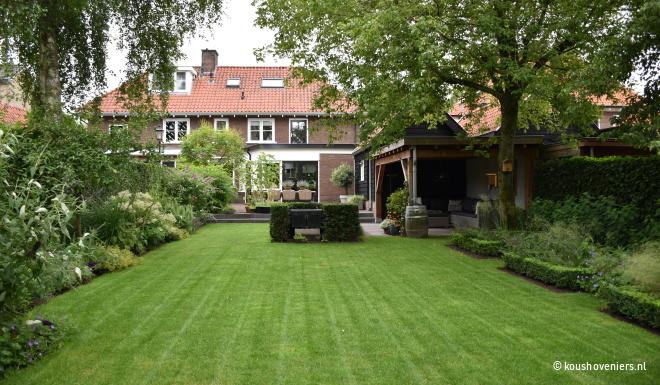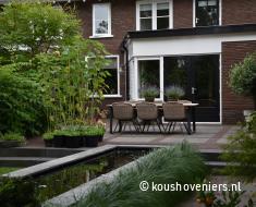 Bij deze authentieke woning in Voorthuizen, realiseerde Koushoveniers deze fantastische tuin. Door een vijver komt er een mooie dieptelijn in je tuin en daarbij is een vijver natuurlijk ook een mooi element in iedere tuin!